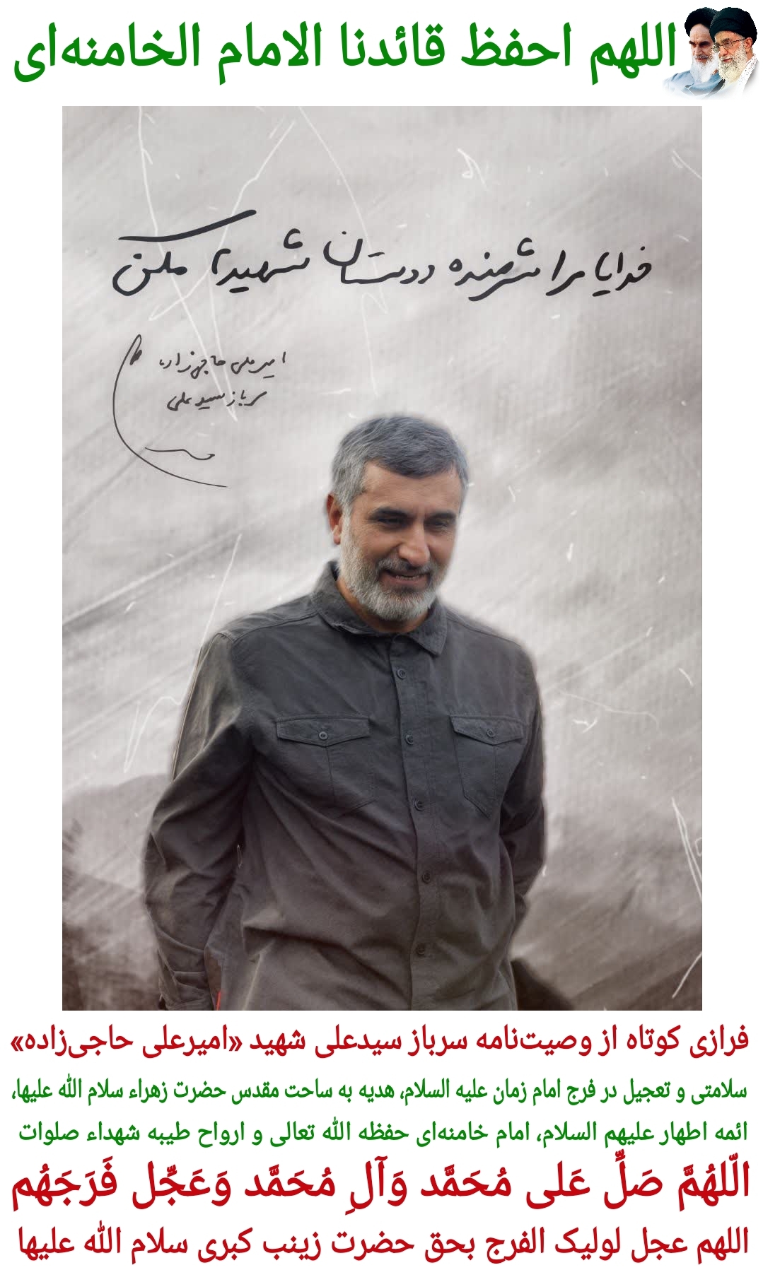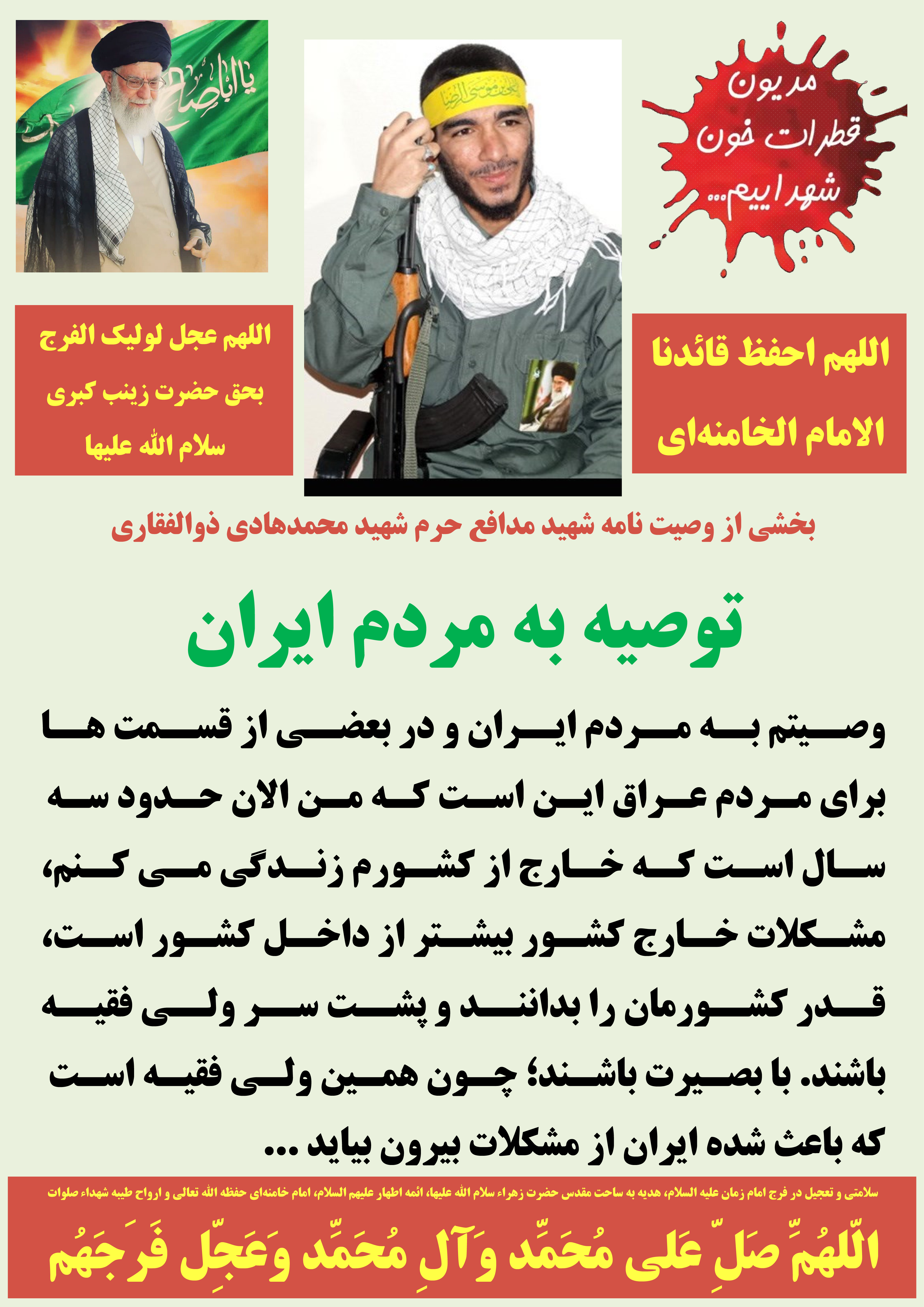 بخشی از وصیت نامه شهید مدافع حرم شهید محمدهادی ذوالفقاری